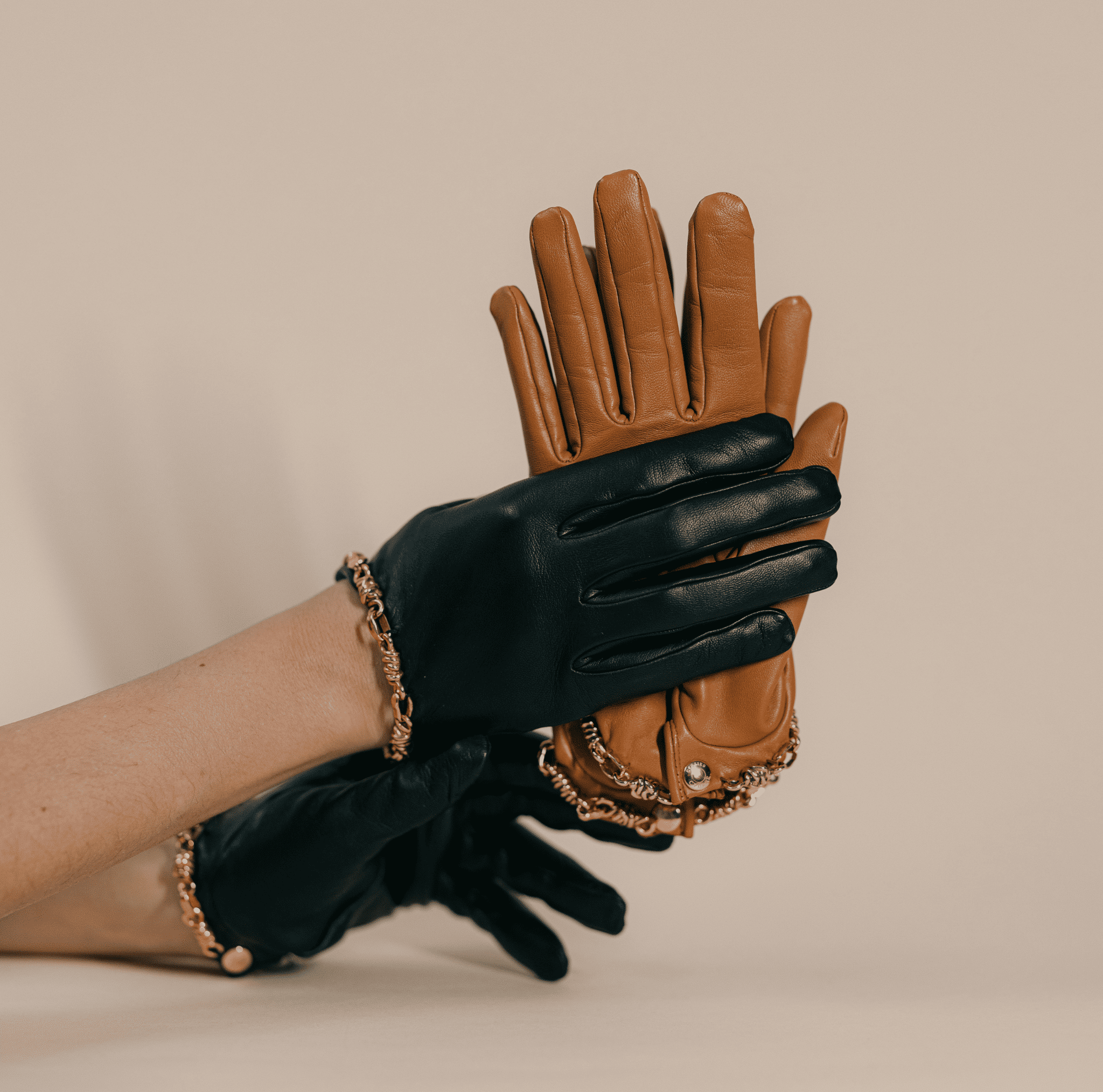 Made in France in Millau, the historic capital of glove-making, these lambskin leather gloves are silk-lined and enhanced by the iconic Goossens chain, crafted in brass dipped in a gold bath. Like a piece of jewelry, it adorns the glove with a precious touch of brilliance.